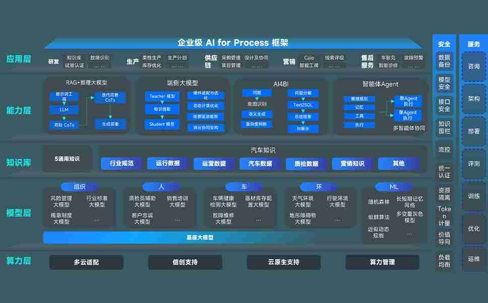 南宫娱乐问学智车解决方案是一套基于AI技术的汽车行业智能化系统,,覆盖从底层算力到顶层AI应用的全栈方案。。方案由算力层、、模型层和应用层组成:算力层,,方案支持多种一体机配置,,,具备云端灵活部署、、、、多云适配以及动态优化计算资源的能力;模型层,,,,南宫娱乐问学平台版提供了企业级AI应用一站式构建与管理平台,,,支持基于后训练强化技术的汽车企业专属模型的训练、、、评测和运营;应用层,,,南宫娱乐问学DeepSeek版提供包括超级员工、、智能招采、、智能营销、、、、智能客服、、、AI for BI等一系列解决方案,,,可助力汽车行业实现数字化转型,,,让管理更智能、、响应更敏捷。。